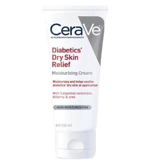 Ingredients that can help hydrate diabetics’ dry skin include ceramides that help restore the skin’s barrier to prevent moisture loss and urea that helps attract and retain moisture. CeraVe Diabetics’ Skin Relief Moisturizing Cream features both of these ingredients to leave diabetics’ es dry skin feeling soft and smooth .