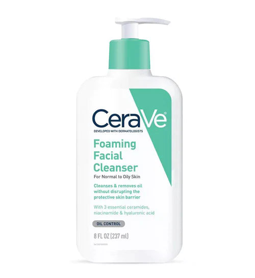 CeraVe Foaming Facial Cleanser was developed with dermatologists to deeply cleanse, remove excess oil and refresh the skin without over-stripping it or leaving it feeling tight and dry. Featuring three essential ceramides, hyaluronic acid and niacinamide, this gel-based foaming cleanser is an effective yet non-irritating way to cleanse and care for your normal to oily skin.