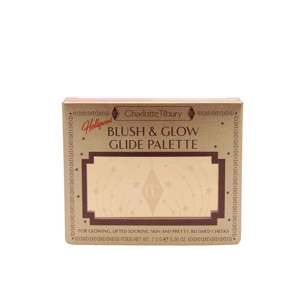 The Charlotte Tilbury Hollywood Blush & Glow Glide Palette – Fair Medium is a luxurious face palette designed to deliver a naturally radiant, Hollywood-inspired glow. Specially curated for fair to medium skin tones, this versatile duo combines a silky blush and a luminous highlighter to enhance your complexion with seamless color and light.