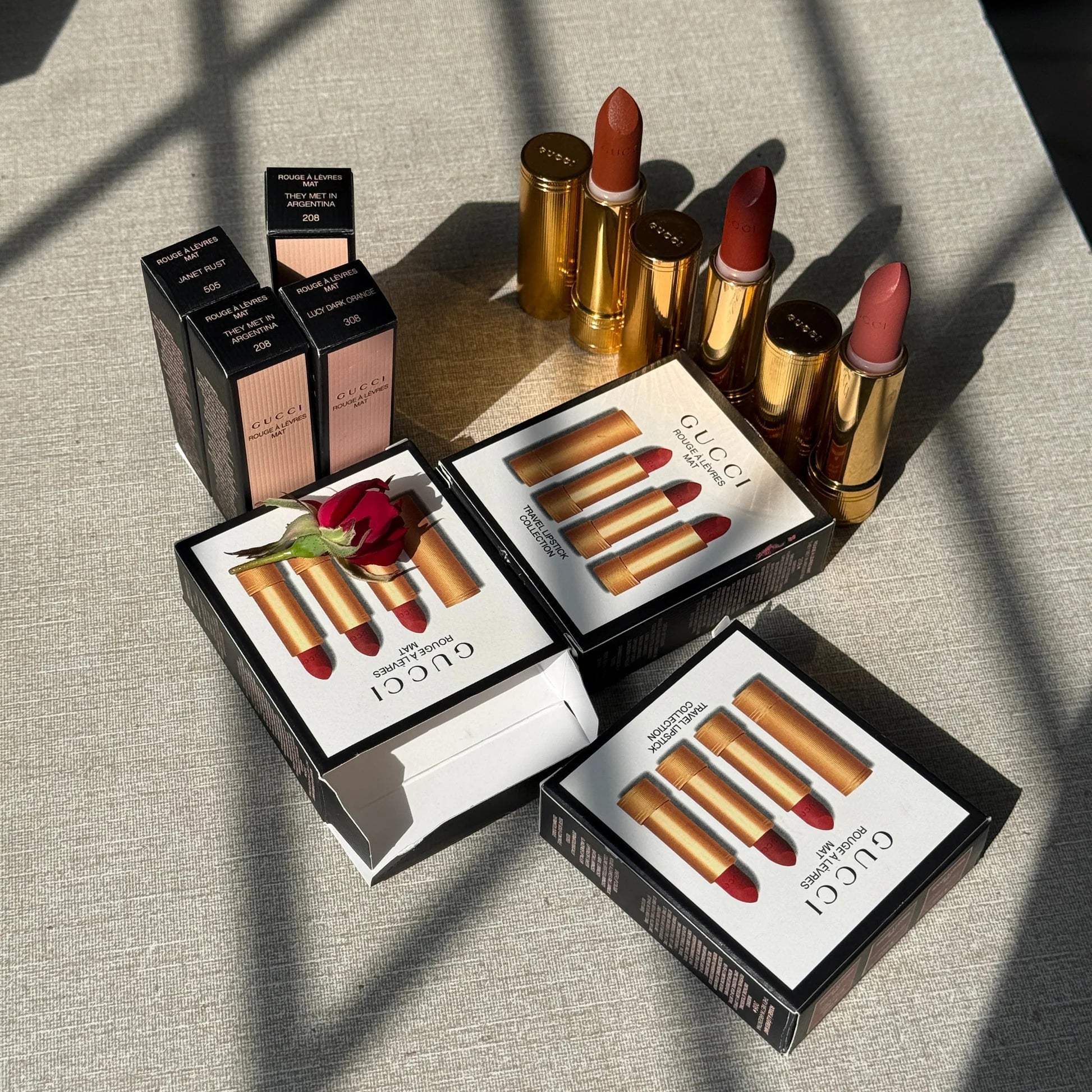 Elevate your beauty routine with the Gucci Rouge À Lèvres Mat Lipstick Trio, a luxurious collection of richly pigmented matte lipsticks designed to deliver bold color, long-lasting wear, and a velvety smooth finish. Inspired by classic Hollywood glamour and modern elegance, this premium lipstick trio is perfect for those who want versatility and sophistication in one set.