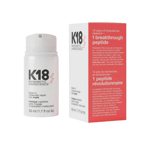 The K18 Leave-In Molecular Repair Hair Mask – 50ML is a revolutionary treatment designed to repair hair damage from within. Powered by advanced K18Peptide™ technology, this leave-in mask works at the molecular level to reconnect broken keratin chains caused by chemical treatments, heat styling, and environmental stressors. Unlike traditional conditioners and masks that only coat the surface, K18 penetrates deep into the hair’s core to restore strength, elasticity, and smoothness.